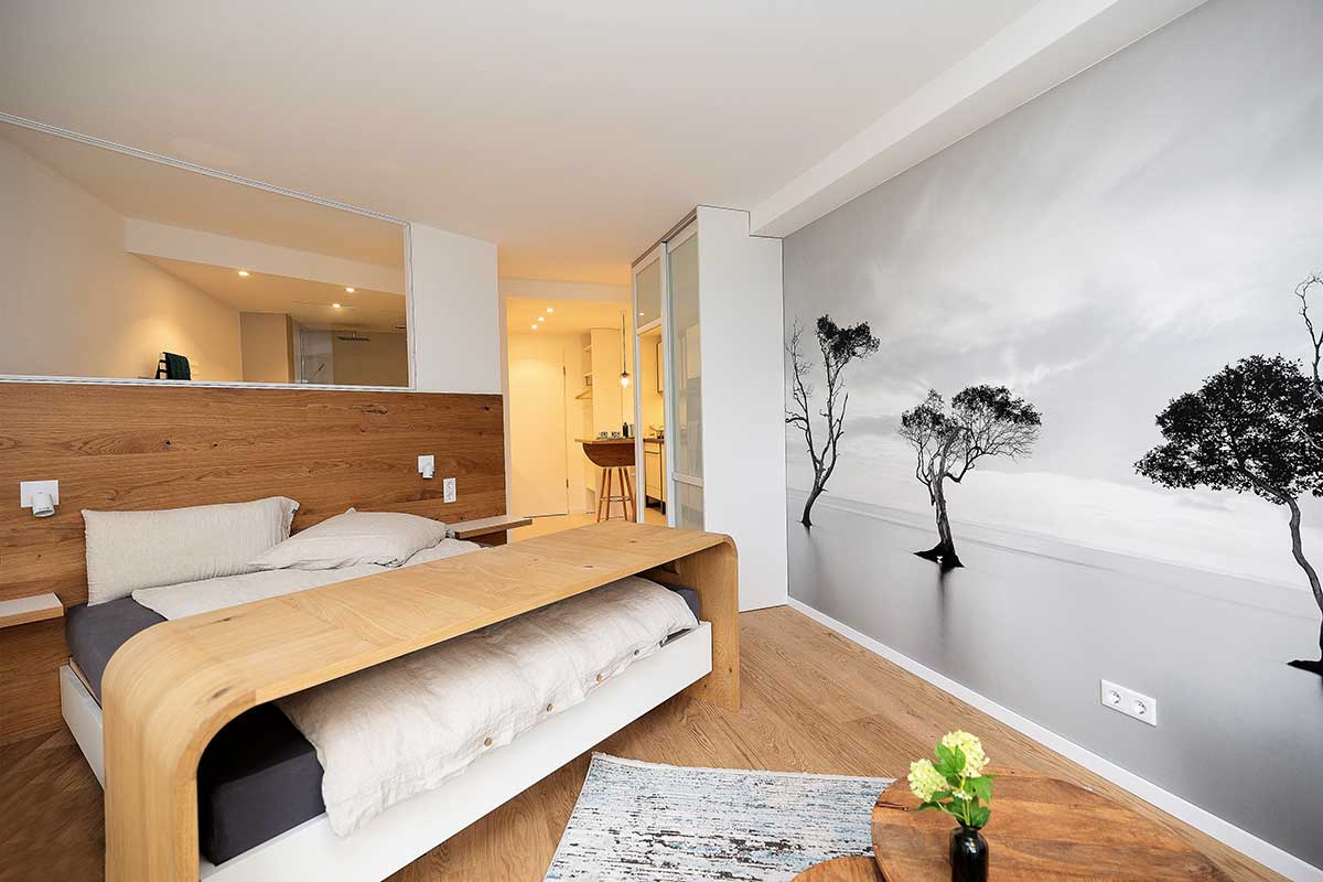 Schon beim Eintreten spürt man, dass hier jedes Apartment einzigartig gestaltet wurde. Helle Farben, hochwertige Materialien und durchdachte Details laden zum Ankommen und Verweilen ein. WLAN, Komfortmöbel und praktische Extras und unser airfect Original Kissen gehören selbstverständlich dazu.