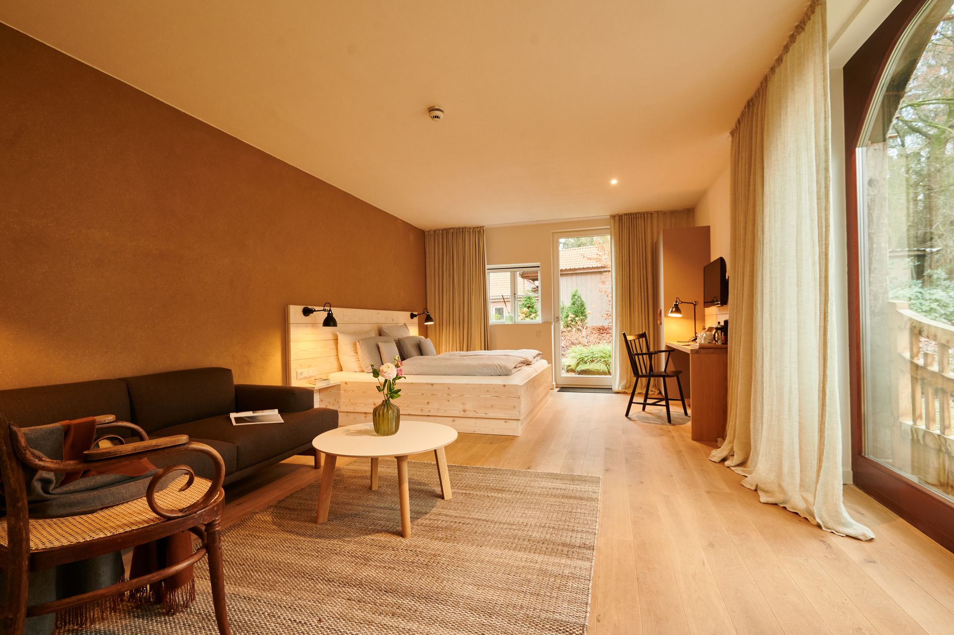 Das 3-Sterne-Superior-Hotel vereint ländliche Idylle mit modernem Komfort: Naturmaterialien wie Massivholz und Lehmputz sorgen für ein gesundes Raumklima, die Einrichtung ist klar, unaufdringlich und stilsicher.