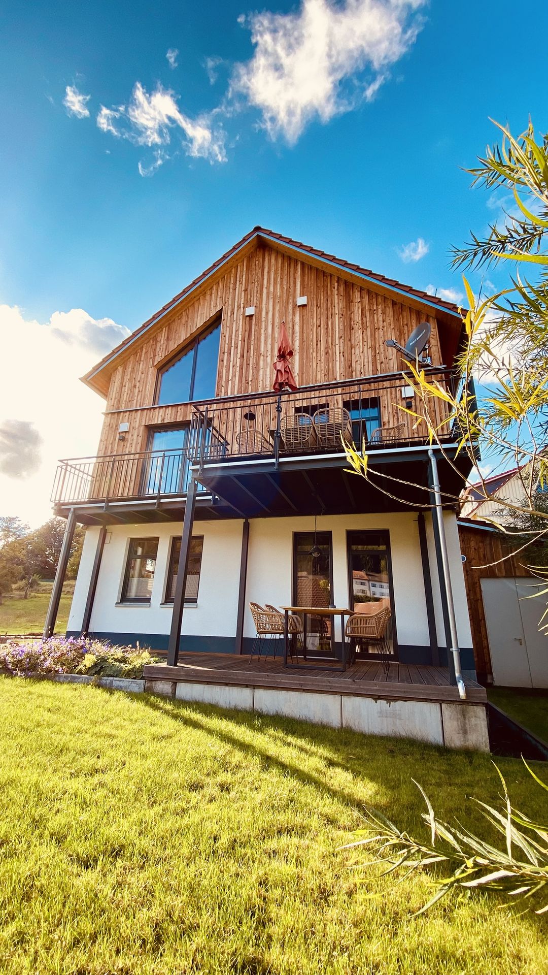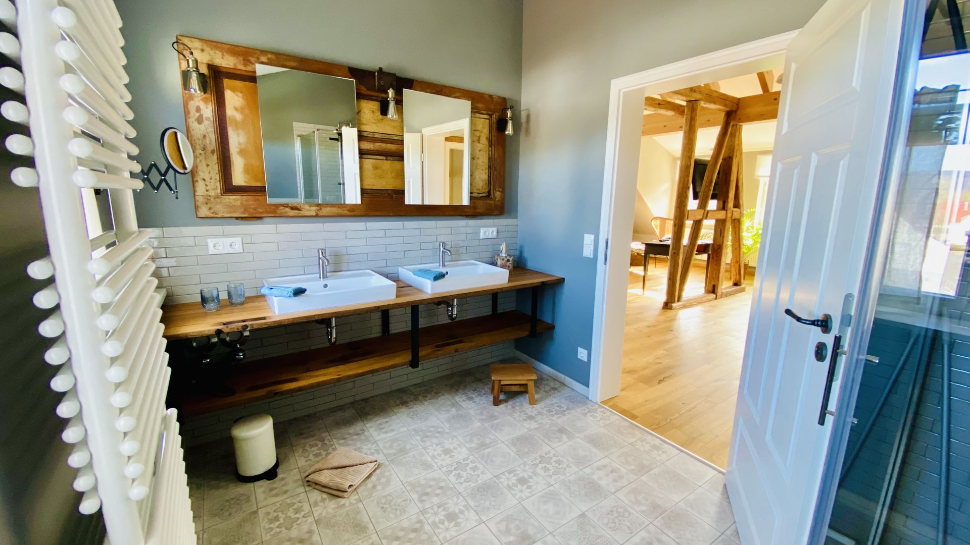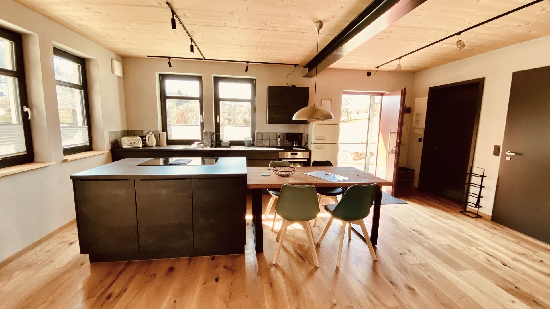 Ein besonderes Element des Hofs ist die Saunascheune, die 2025 mit dem Hessischen Denkmalschutzpreis ausgezeichnet wurde. Unter dem alten Gebälk finden sich Sauna, Ruheraum und ein kleiner Balkon mit Blick ins Grüne – ein Ort zum Abschalten und Ankommen.