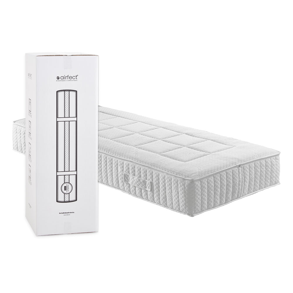 Genau so, wie du es willst, wenn du nicht in einer Matratze versinken, sondern kraftvoll und unterstützt liegen möchtest. Ergänzt wird der stabile Federkern auf beiden Seiten von airfect® Komfortschaum, der sich sanft anpasst, Druck intelligent aufnimmt und dir diese angenehme Entspannung gibt, ohne an Festigkeit zu verlieren.